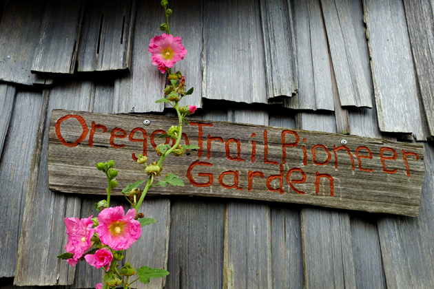 The demonstration kitchen garden showcases the sustainable gardening practices that the pioneers used and serves as a teaching tool for the public. There are also apple trees, grapes, hops, and flowers, and we are working on a native American garden with plants known to be used by tribes in our area.